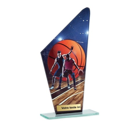 Trophée en Verre imprimée collé sur un socle en Verre Jade transparent