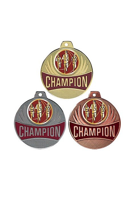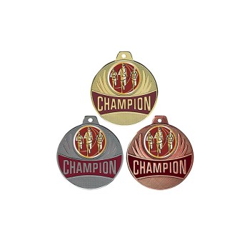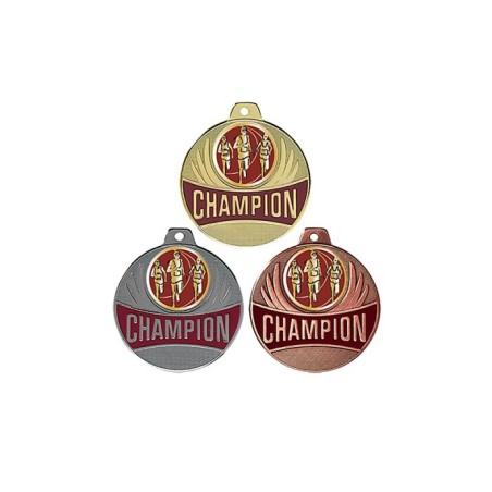 Médaille avec CHAMPION en lettre d'or sur fond bordeaux émaillé