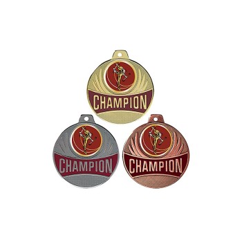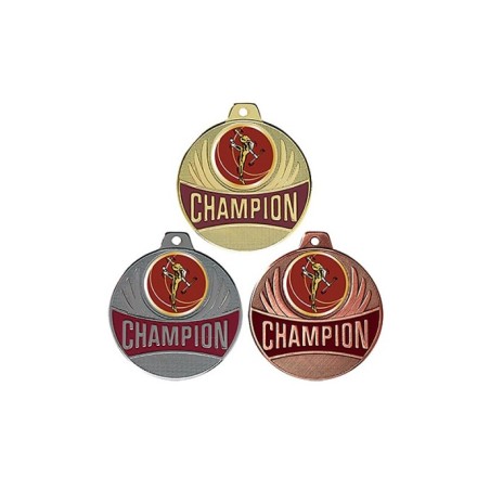Médaille avec CHAMPION en lettre d'or sur fond bordeaux émaillé