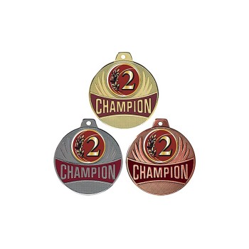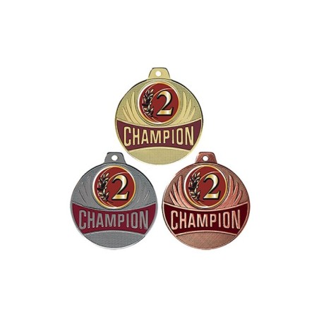 Médaille avec CHAMPION en lettre d'or sur fond bordeaux émaillé