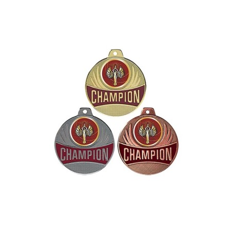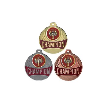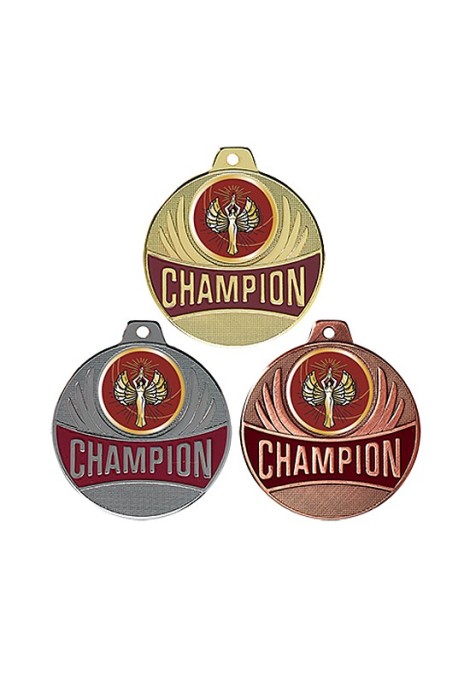 Médaille avec CHAMPION en lettre d'or sur fond bordeaux émaillé