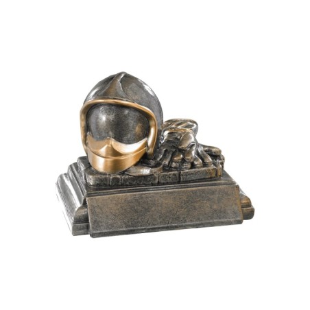 Casque F1 et gants de Pompier sur socle rectangulaire, Sculpture en résine façon bronze