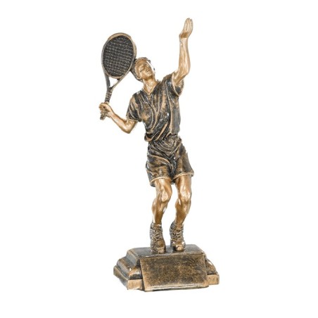 Tennisman en train de servir, Sculpture en résine façon bronze