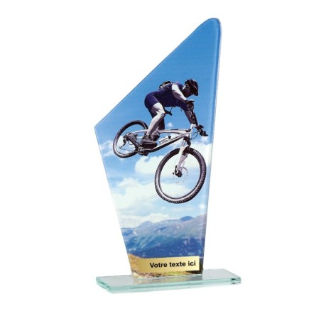 Trophée en Verre imprimée collé sur un socle en Verre Jade transparent