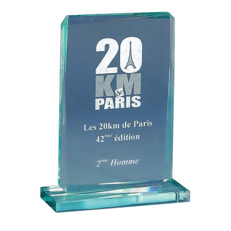 Trophée Qualité Verre Jade : Épaisseur 12mm - A personnaliser entièrement avec vos propres illustrations et textes ✓ Frais de création : 15 €, une seule fois à la première utilisation et quelque soit le nombre d'articles commandés ✓ Avant la réalisation du trophée, une épreuve numérique vous sera envoyée par e-mail à titre de Contrôle (voir conditions) ✓ Gravure Laser Gratuite (votre logo + 40 caractères)