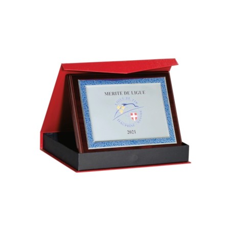 Plaque en métal sur support bois, livré avec écrin. A personnaliser entièrement avec vos propres illustrations et textes