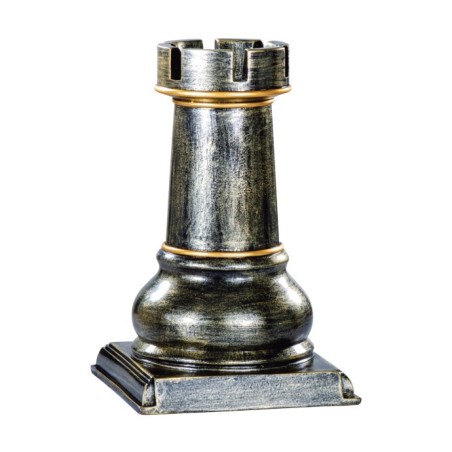 Pièce d'échecs (Tour) montée sur socle, résine façon bronze