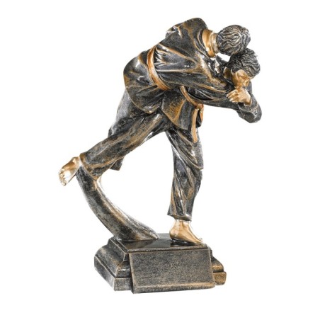 2 Judokas en actions sur socle carré, Sculpture en résine façon bronze
