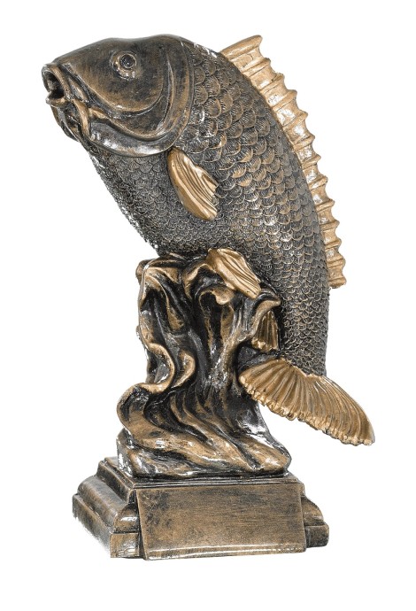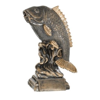 Belle Sculpture en résine représentant une Carpe sur un socle, finition Bronze