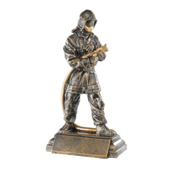 Sapeur-Pompier en train de se servir d'une lance à incendie monté sur un socle carré, Sculpture en résine façon bronze