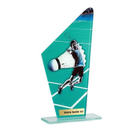 Trophée en Verre imprimée collé sur un socle en Verre Jade transparent
