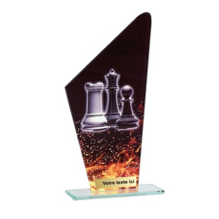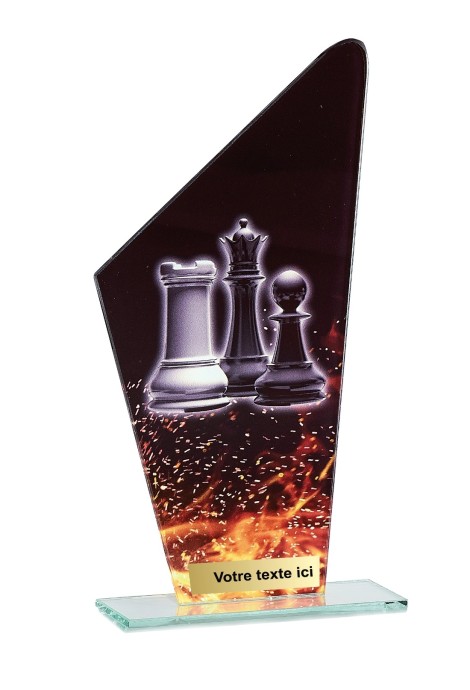 Trophée en Verre imprimée collé sur un socle en Verre Jade transparent