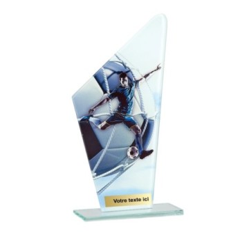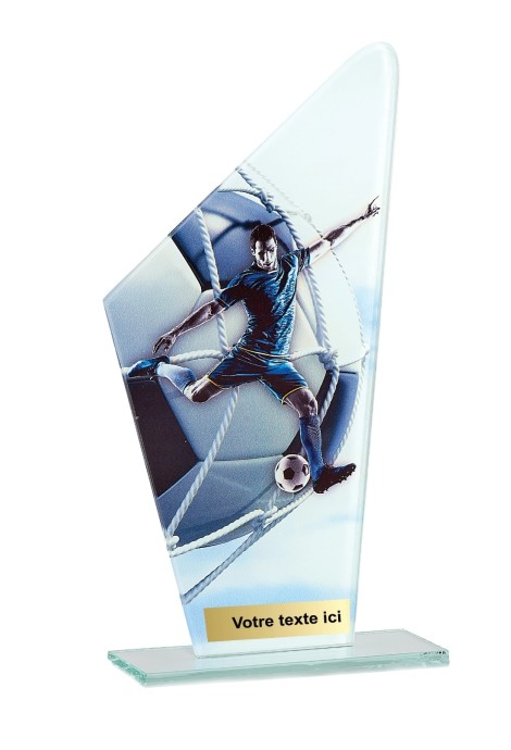 Trophée en Verre imprimée collé sur un socle en Verre Jade transparent