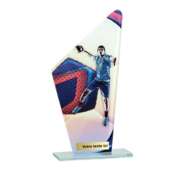 Trophée en Verre imprimée collé sur un socle en Verre Jade transparent