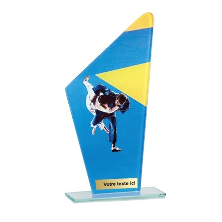 Trophée en Verre imprimée collé sur un socle en Verre Jade transparent