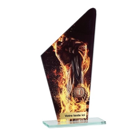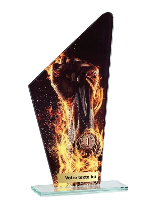 Trophée en Verre imprimée collé sur un socle en Verre Jade transparent