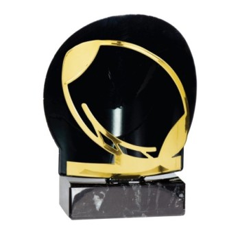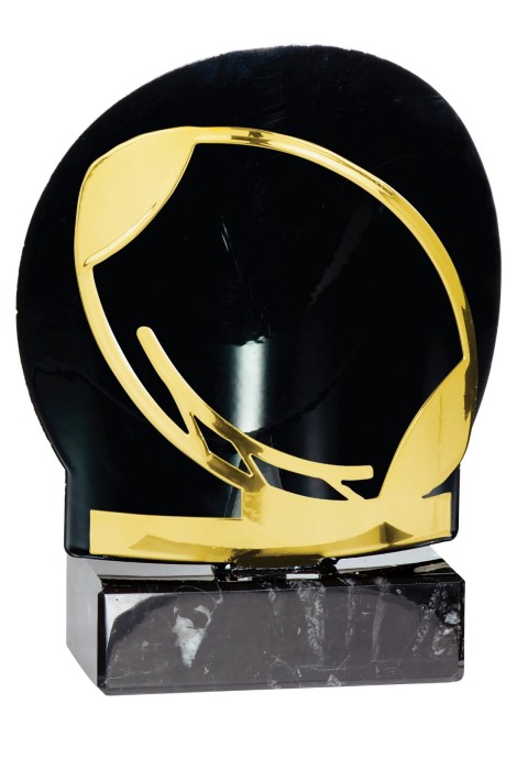 Monté sur un marbre noir, Trophée tout métal, sujet doré sur fond noir