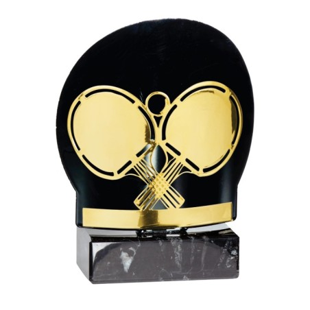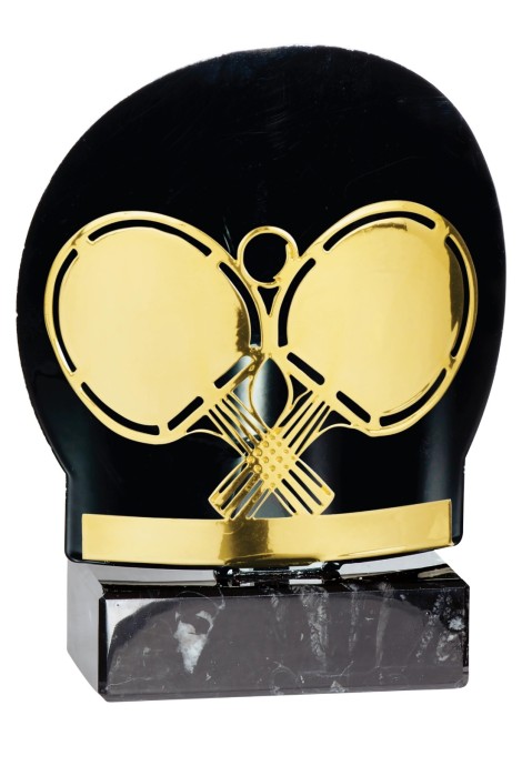 Monté sur un marbre noir, Trophée tout métal, sujet doré sur fond noir