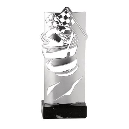 Monté sur un marbre noir, Trophée en métal argenté, disponible en 2 hauteurs
