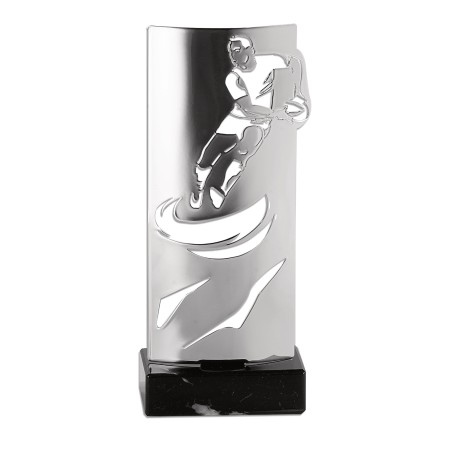 Monté sur un marbre noir, Trophée en métal argenté, disponible en 2 hauteurs