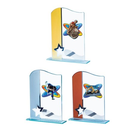 ✓ Matière du trophée : Verre avec partie dorée, argentée ou bronze + lignes argentées