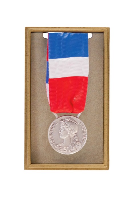 Attribuée à titre de récompense professionnelle pour 20 ans de travail dans le secteur privé, notre médaille du travail vous est livrée gravée au verso et présentée dans un magnifique écrin bijoutier. L'attribut boutonnière est en supplément (sur demande)