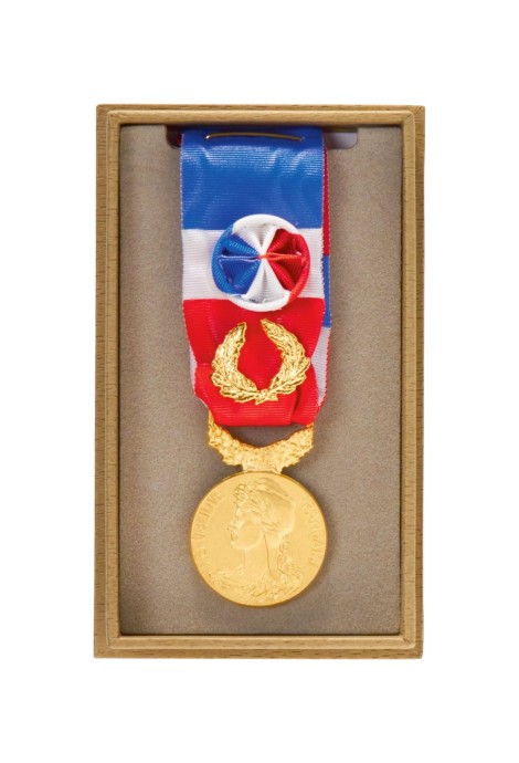 Attribuée à titre de récompense professionnelle pour 40 ans de travail dans le secteur privé, notre médaille du travail vous est livrée gravée au verso et présentée dans un magnifique écrin bijoutier. L'attribut boutonnière est en supplément (sur demande)