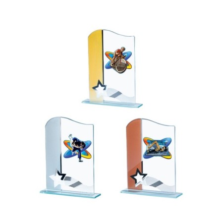 ✓ Matière du trophée : Verre avec partie dorée, argentée ou bronze + lignes argentées