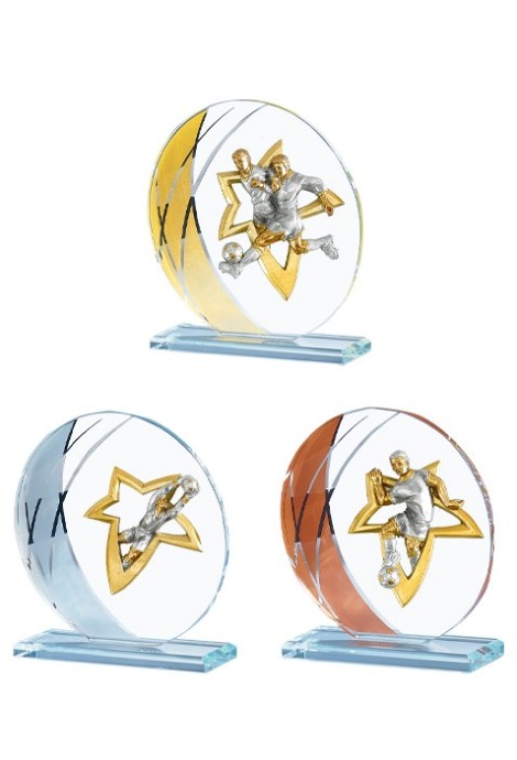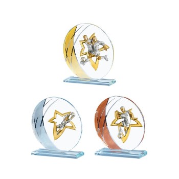 ✓ Matière du trophée : Verre avec partie dorée, argentée ou bronze + lignes argentées