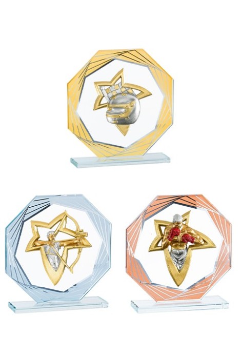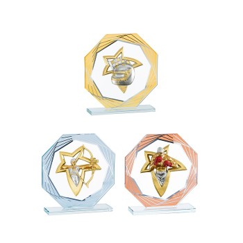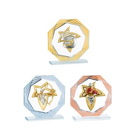 ✓ Matière du trophée : Verre avec partie dorée, argentée ou bronze + lignes argentées