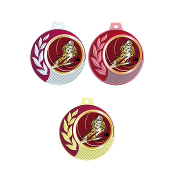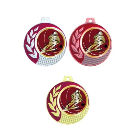 Médaille couleur émaillée rouge bourgogne sur le bord et en rappel sur le sport