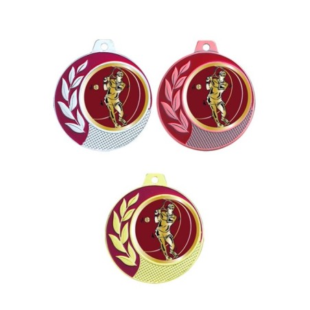 Médaille couleur émaillée rouge bourgogne sur le bord et en rappel sur le sport