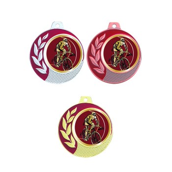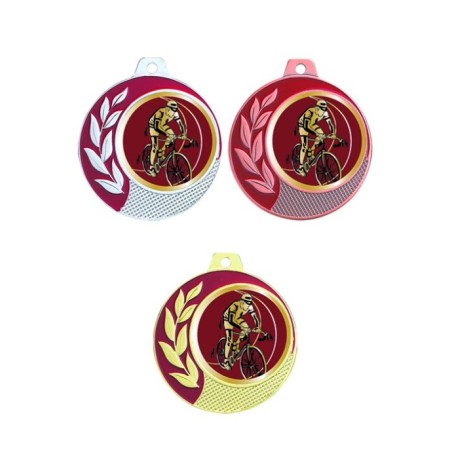 Médaille couleur émaillée rouge bourgogne sur le bord et en rappel sur le sport