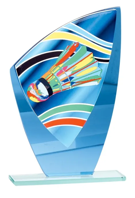 Céramique imprimée montée sur un support en verre-miroir bleu et une base en verre transparent