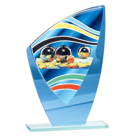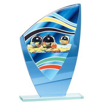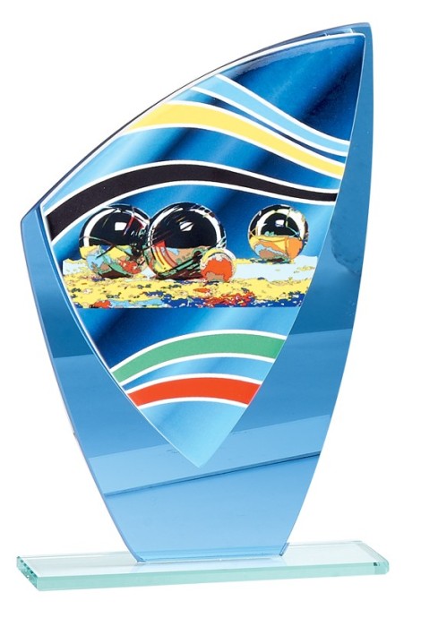 Céramique imprimée montée sur un support en verre-miroir bleu et une base en verre transparent