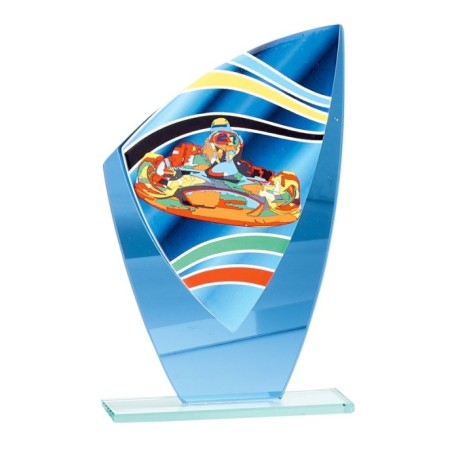 Céramique imprimée montée sur un support en verre-miroir bleu et une base en verre transparent
