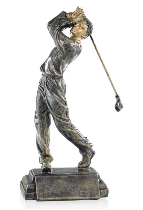 Joueur de Golf de plain-pied sur socle, Sculpture en résine façon bronze