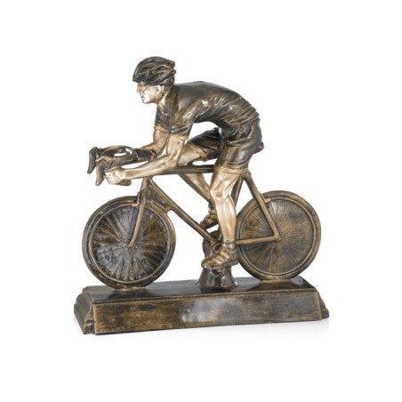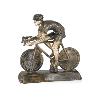 Grande Sculpture en résine représentant un cycliste sur route sur son vélo, finition Bronze