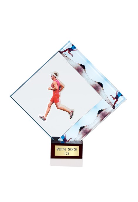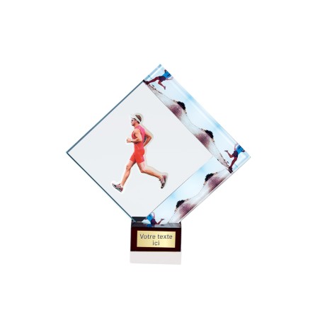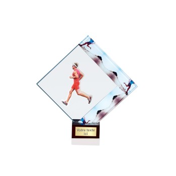 En Déstockage, Trophée en Verre imprimée monté sur un socle en Bois vernis