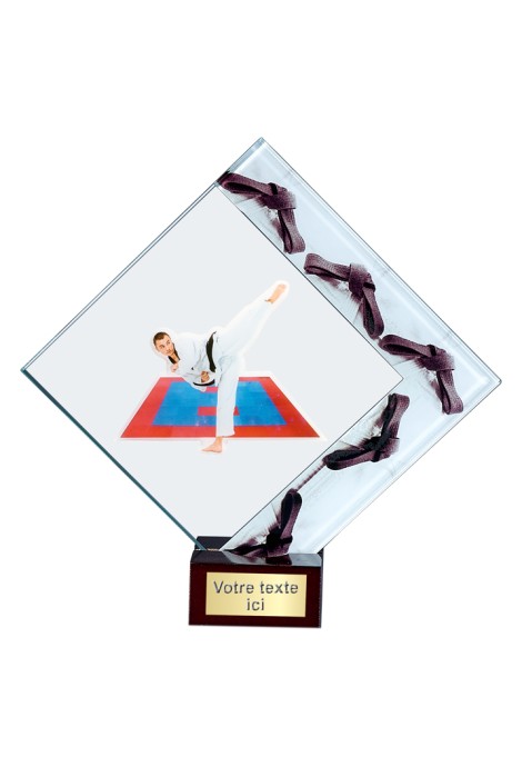 En Déstockage, Trophée en Verre imprimée monté sur un socle en Bois vernis