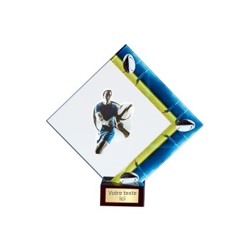 En Déstockage, Trophée en Verre imprimée monté sur un socle en Bois vernis