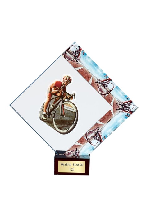 En Déstockage, Trophée en Verre imprimée monté sur un socle en Bois vernis