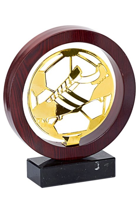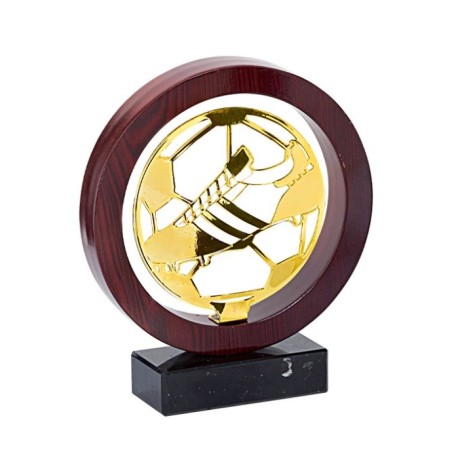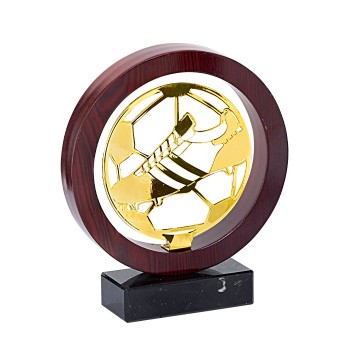 Nouveauté 2025, Sujet en métal doré découpe laser, cerclé d'un bois vernis avec socle en marbre noir