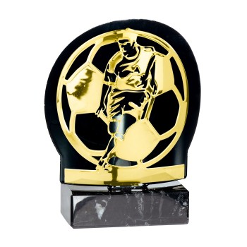 Monté sur un marbre noir, Trophée tout métal, sujet doré sur fond noir
