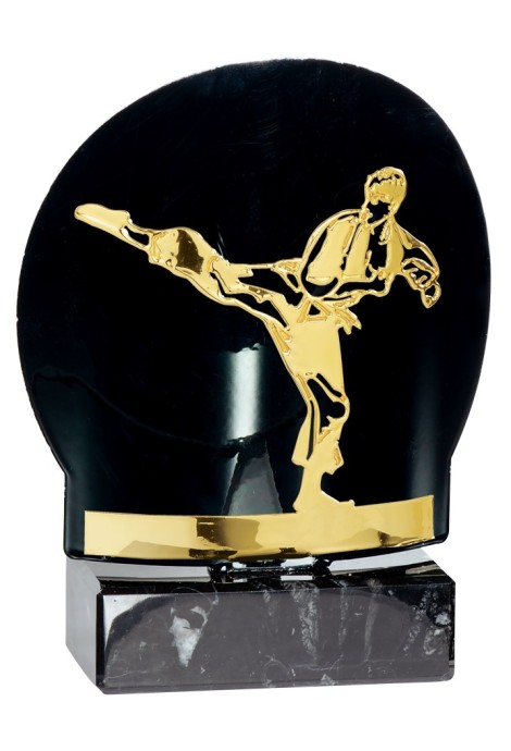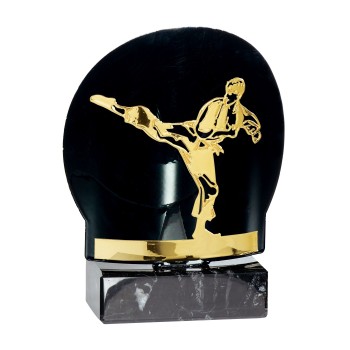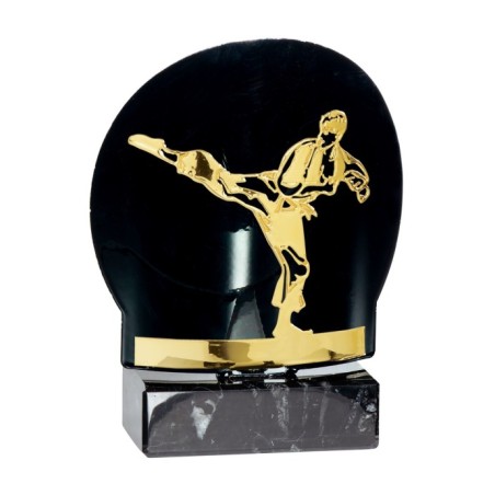Monté sur un marbre noir, Trophée tout métal, sujet doré sur fond noir