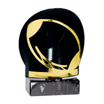 Monté sur un marbre noir, Trophée tout métal, sujet doré sur fond noir