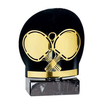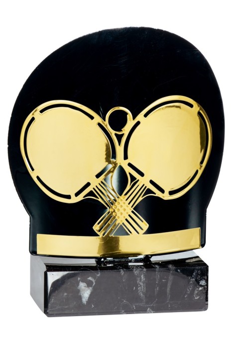 Monté sur un marbre noir, Trophée tout métal, sujet doré sur fond noir