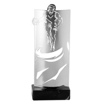 Monté sur un marbre noir, Trophée en métal argenté, disponible en 2 hauteurs