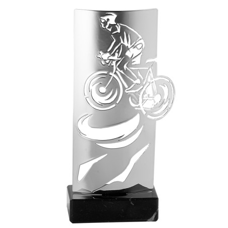 Monté sur un marbre noir, Trophée en métal argenté, disponible en 2 hauteurs