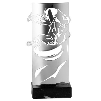 Monté sur un marbre noir, Trophée en métal argenté, disponible en 2 hauteurs